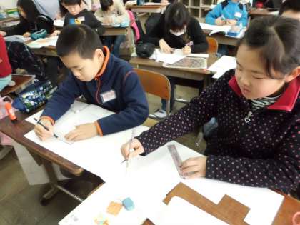 今日は,立方体の展開図をかき,組み立てました。なかなか難しく悪戦苦闘!?していました。立方体は,いろいろな展開図があることをしりました。