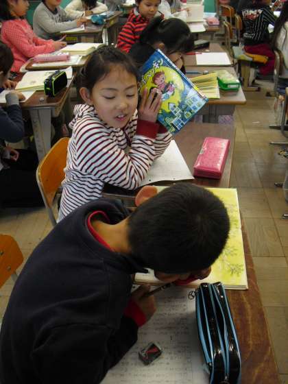 今日は、みんなに紹介したい本のあらすじを書きました。自分で選んだ本を何度も読み返しながら、一生懸命あらすじをかいています。うまくまとめられるかな?