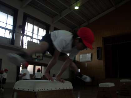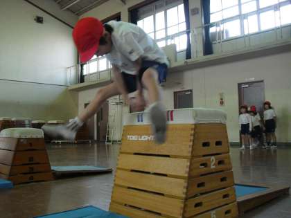 今日は開脚跳びに挑戦です。みんなとっても上手にとびばこを跳び越すことができています。みんながんばったね!!