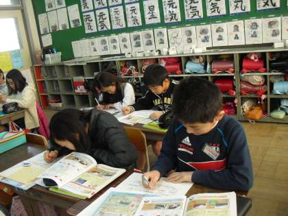 今日の社会のめあて「京都舞鶴港は外国とどのようにつながっているのだろう」です。みんな地図や教科書を見て、一生懸命つながりを見つけています。どんなつながりがあるのかな?