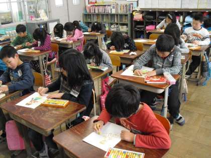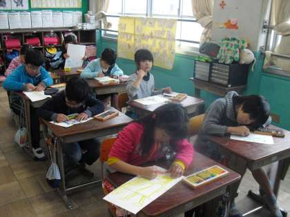 3月9日(月) 3年 図画工作「おいわいの気持ちを絵にしよう」