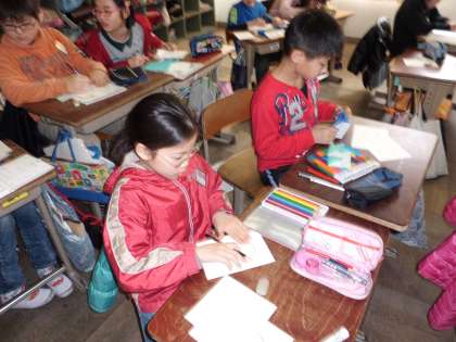 3月5日(木) 4年 図工「6年生に感謝の気持ちをこめて」
