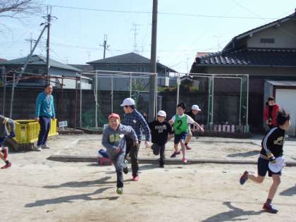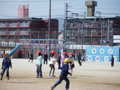 運動委員会主催の「けいどろ大会」がありました。4年生が全員参加で行われました。おにの5年生につかまらないように,ダッシュで逃げたり,つかまった友達を助けたりと楽しいけいどろ大会でした。