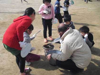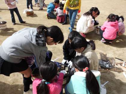 どんどん焼けていきます。でも,まだ炭に火がついていないグループも・・・煙がすごいですね。
