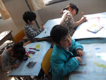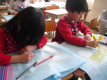 3月11日(水) 1年 図工「作品バックをつくろう」2
