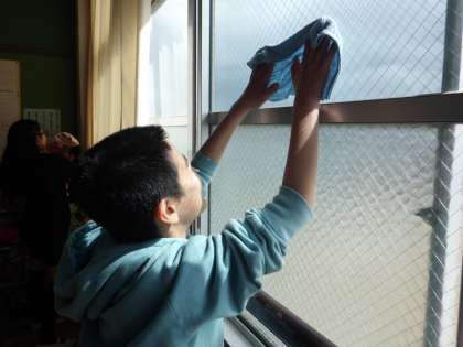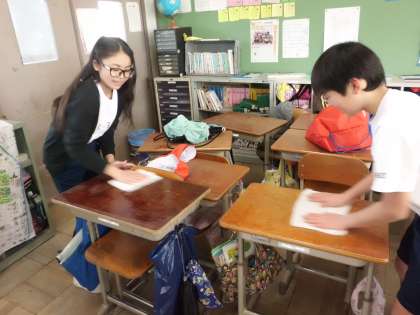 6年生からお礼のプレゼントとしてぞうきんをもらいました。そのぞうきんを使って,教室をきれいにしました。