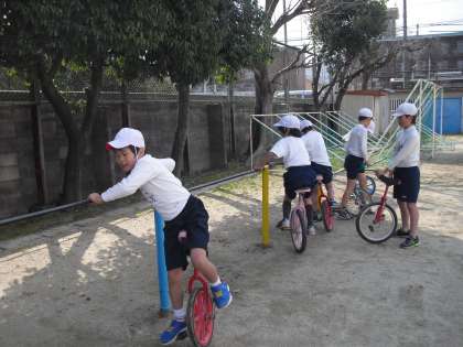 今日は3年生最後の体育でした。一輪車や竹馬が,少しは上手になったでしょうか?