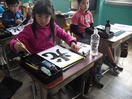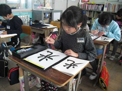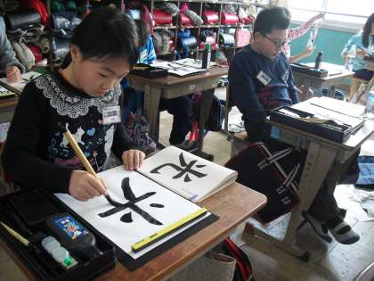 今日は一年間のまとめとして,「光」という文字を書きました。