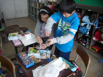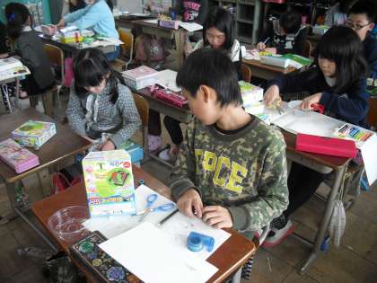これまでに学習したことをふまえて,それぞれおもちゃを作っています。