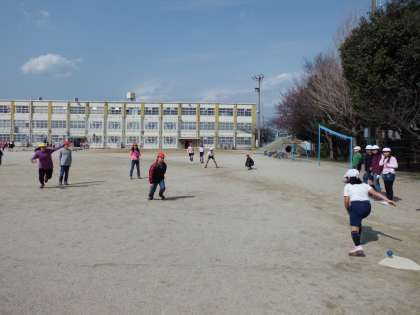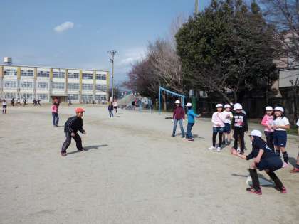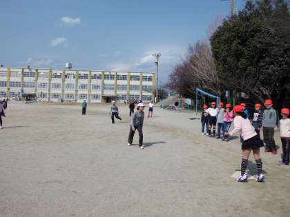 今日は,みんなで「ハンドベースボール」をしました。ぽかぽか天気の中,好プレーや珍プレー?の続出でした!ホームベースの上に立ってかまえたり,ベースを踏まないではしったりと野球を知ってる子ども達には,ありえな〜い光景でした。結果は,10対10の同点引き分けで,めでたしめでたしでし。みんな笑顔で試合終了でした。