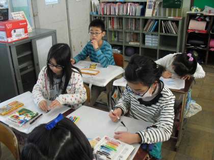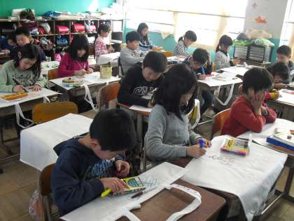 今日は,作品バッグを作りました。一年間で,いろいろなことができるようになりましたね。図工の最後の作品になります。ていねいに作りましょうね。