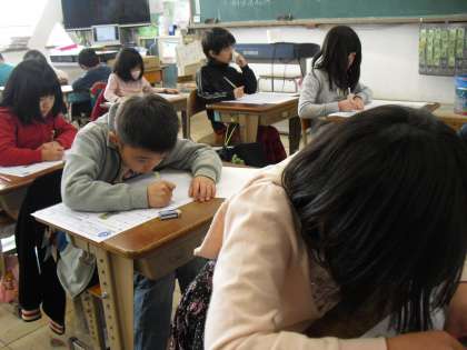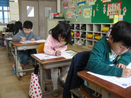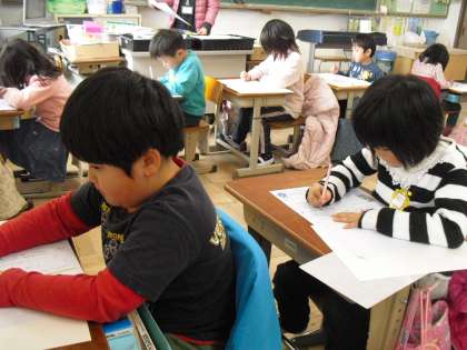 今日は国語のテストがありました。1年前までは毎日遊びまわっていたのに、今ではこんなにしっかり学習しています。1年間、頑張ったね!
