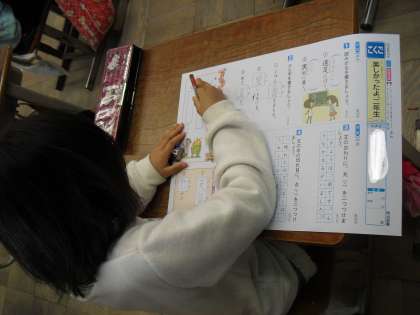 今日は国語のテストです。テストのときには、緊張しますよねー。(?)