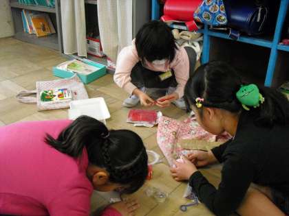 机はたくさんあいているのに、なぜか床に座って作業を始めてしまう2年生でした。