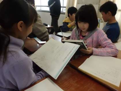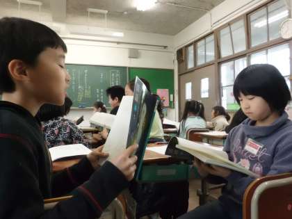 国語の学習では,音読の仕方について学習しています。詩「ふるさと」を読み,情景や作者が詩に込めた思いを想像して発表しました。