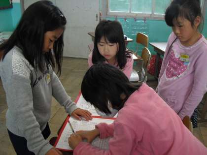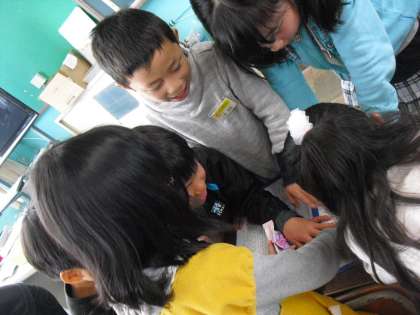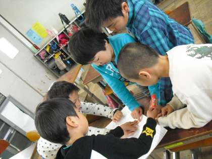 今日は残念ながら雨。楽しみにしていたリレーができませんでしたが、役割分担をチームで相談しました。うまく相談できていますか?