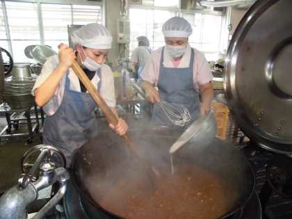 さあ,今日から給食が始まりました!給食室では,4人の給食調理員さんが,力を合わせて美味しい給食を作ります。