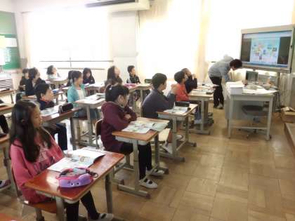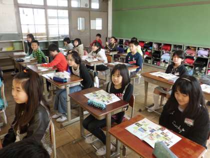 5年生になって初めての外国語活動です。みんなの興味津々の顔がなんとも言えませんね。これからいっぱいの外国語にふれ,楽しんで学習しましょう!