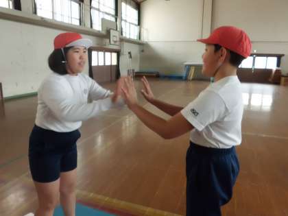 最後はみんなで手押し相撲をしました。