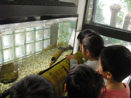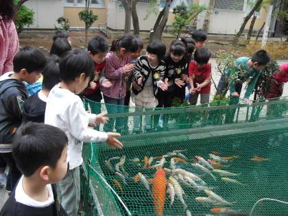 手をたたけば寄ってくる鯉にみんな大喜び。初めて見るうなぎにも、みんな大興奮。「わたし、うなぎだーい好き!」って言葉には、ちょっぴりどっきり。ごめんね。食用でなくて・・・・・。
