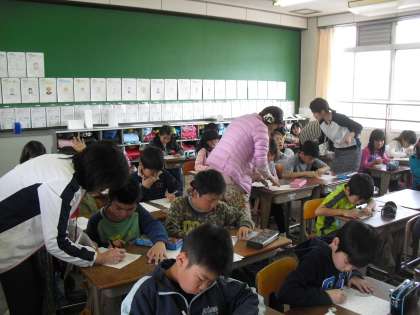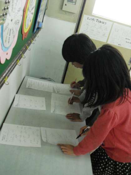 川岡校では、金曜日の6校時は高学年のチャレンジタイムです。この時間には、低学年の先生が毎回応援にかけつけ、たくさんの指導者でみんなの学習を支えています。