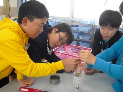 ものが燃える様子を観察し,ものが燃えるために何が必要なのか,学習課題を設定しました。