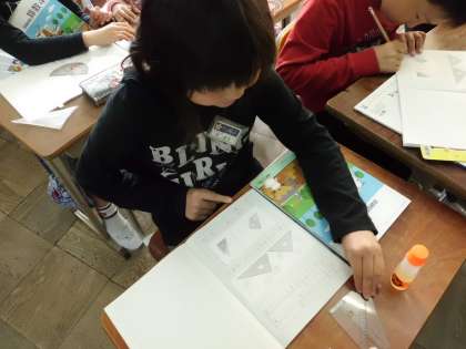 今日は,三角定規の角の大きさについて学習しました。三角定規を組み合わせてできる角度について考えました。それぞれの角度をたしたり引いたりして,求めました。