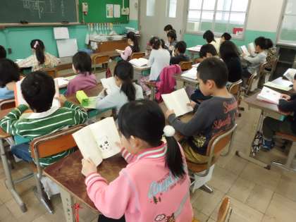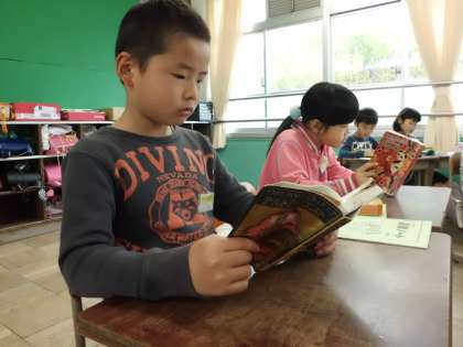 5分前には準備をして,席に座って読み始めています。みんなしっかり読んでいるね。