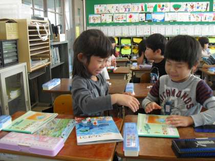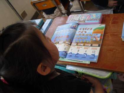 今日の算数は10までの数です。5より大きい数を数図ブロックを並べならて数えていきます。2人組でもなかよく学べましたね!