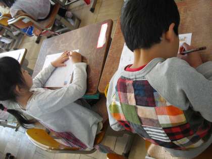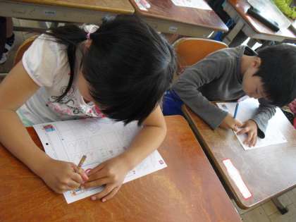 今日の国語の宿題は「ん」です。名前をかいたら、あとはおうちでの宿題です。がんばってね!