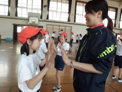 ストレッチのあとは,手押相撲をしました。