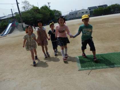 顔合せが終わって,同じグループの1年生と仲良くあそびました。時計を見て,5分前には手をつないで帰ってくる姿が,おにいさん,おねえさんらしいですね。