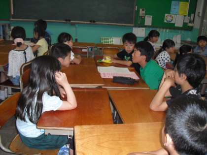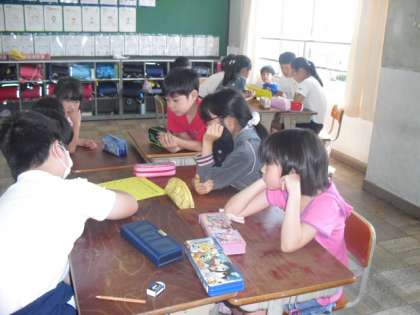 たてわり班で初めて集まっての顔合わせです。自己紹介の後は,年間のたてわりあそびを決めます。その後時間があれば,教室でできる遊びをして楽しみます。