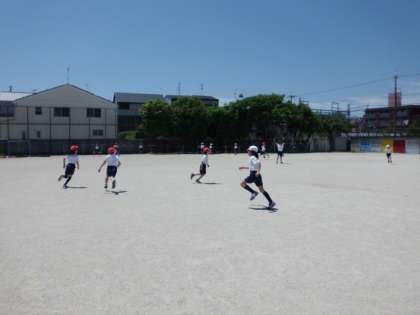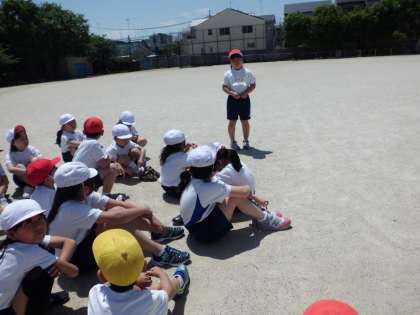 今日の体育は「おにあそび」です。子どもたちは,たくさんの「おにあそび」を知っていました。おににつかまらないように,逃げて逃げて!