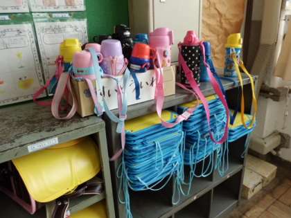 と,思ったら後ろの水筒やファイルもお行儀よく並んでいました。