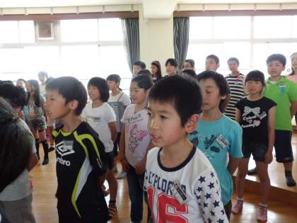 1年生をむかえる会の練習をしました。入学のお祝いにみんなで「フレンドシップ」を歌います。4年生らしくしっかり歌えるように練習しました。明日の本番に向けてバッチリです。