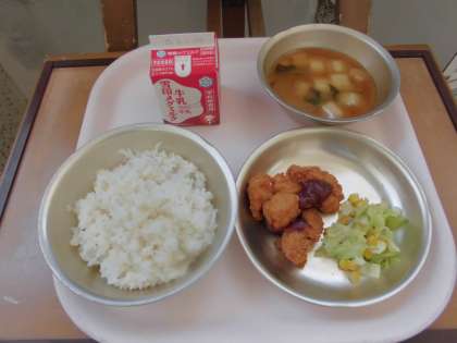 とびきり美味しいチキンカツの献立に,子どもたちは大満足ででした!