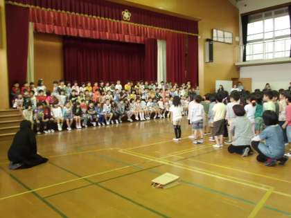 1年生をむかえる会では,「たねまき ちちんぷい」の詩と,去年育てたあさがおからとれた種をプレゼントしました。喜んでもらえたかな。
