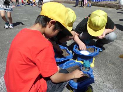 今日はホウセンカのたねをまきました。これから毎日水をやって,大切に育てていこうね。