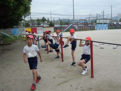 今日から鉄棒の学習がはじまりました。今日は,自分ができる技を確かめました。