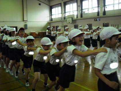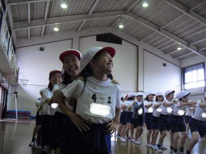 4年生の体育はフォークダンス。みさきの家のキャンプファイヤーで踊ります。