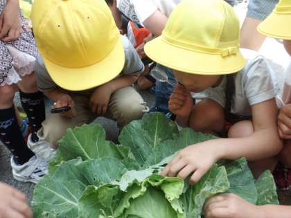 今日は,モンシロチョウの卵と幼虫を観察しました。次に,アゲハチョウの幼虫も観察しました。