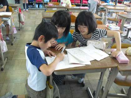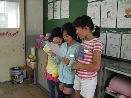 今日は係ごとに集まって、練習です。自分のセリフは、ちゃんと覚えておこうね!