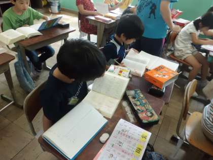 3年生になって,国語辞典の使い方を習いました。時間があれば,「語句調べプリント」を見ながら,いろいろな言葉を調べています。少しずつ,辞書をひくスピードがはやくなってきましたね。