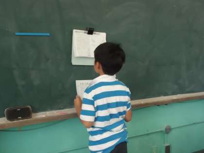 給食の感想を,毎日,日直さんが考えて書いています。給食室から毎日届くお手紙をみながら,表現を参考にしています。