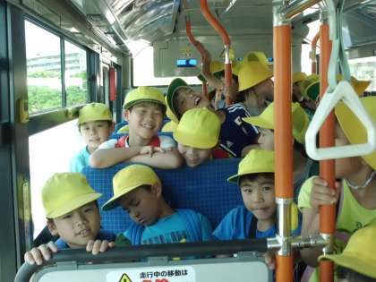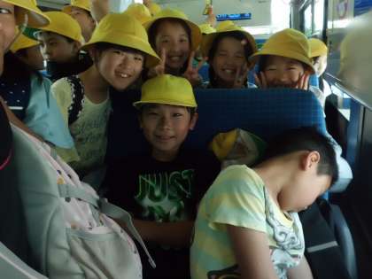 バスの中でも,静かにしていました。おや?静かだと思ったら・・・。みんなとってもよくがんばりましたね!これから,京都市のまちの様子について,調べたことをまとめていこうね。
