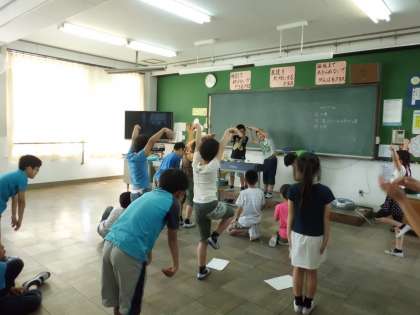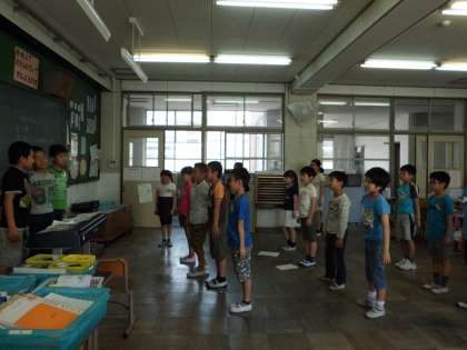 みさきの家にむけて係活動をしました。レクレーション係の子ども達が,キャンプファイヤーの出し物の練習をしました。