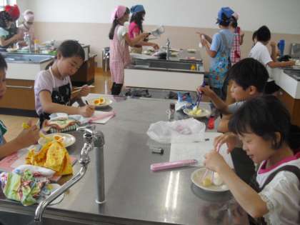 今日は卵の殻むきに苦労している班がいくつかありましたが,班で協力してがんばりました。ゆで時間によって,材料によって,ちがいがあることがわかりました。