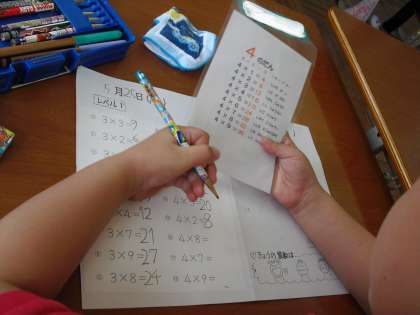 今日の算数は、自分の課題にあった問題に挑戦しました。かけ算だったり、引き算やたし算だったり、みんな一生懸命考えながら、がんばりました。