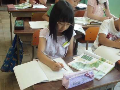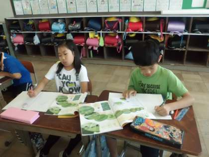 今日はモンシロチョウのよう虫の観察をしました。教科書と見比べながら,気がついたことなどを書きました。丁寧に色がぬれたかな?